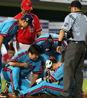 롯데가 플레이오프를 앞두고 선수들의 잇따른 부상에 비상이 걸렸다. 지난 15일 롯데 홍성흔이 기아 타이거즈 윤석민의 공에 맞에 손등을 부상당한데 이어 24일 경기에서는 조성환이 또 윤석민의 공에 왼쪽 머리를 맞았다. 헬멧에 맞아 큰 부상은 피했으나 가벼운 뇌진탕 증세를