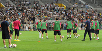 말도 많고 탈도 많았던 'FC바르셀로나 초청 K리그 올스타전 2010' 경기가 4일 오후 8시 서울 월드컵경기장에서 열릴 예정인 가운데 한국 K-리그 올스타팀 멤버들이 그라운드에서 몸을 풀고 있다.