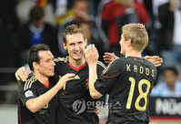 `신형 전차군단' 독일이 2010 남아공월드컵축구대회에서 남미의 양대 산맥 아르헨티나를 무너뜨리고 4강에 진출했다. 독일은 4일(한국시간) 케이프타운의 그린포인트 경기장에서 열린 대회 8강전에서 2골을 넣은 미로슬라프 클로제를 비롯해 토마스 뮐러(이상 바이에른 뮌