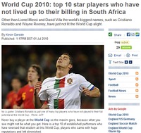 2010 남아공 월드컵이 4강 진출팀을 확정하며 점차 종반으로 치닫고 있는 가운데 크리스티아누 호날두, 웨인 루니 등 세계 최고 공격수로 불리는 특급스타들이 팬들의 기대에 못미치는 활약을 보이며 때아닌 '먹튀' 논란에 휩싸이고 있다.'먹튀'란 프로 스포츠 리그에서 높은