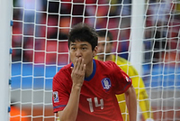 그리스에 기선제압 성공한국이 기선 제압에 성공했다.한국 대표팀은 12일(한국시간) 오후 8시 30분 남아공 넬슨 만델라베이 경기장에서 열린 그리스와의 본선 첫 경기에서 수비수 이정수가 기성용의 날카로운 프리킥을 그대로 슈팅, 한국팀의 남아공월드컵 첫 골을 기록했다.전반