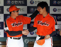 장성호·김경언·이동현, 한화 유니폼 입어프로야구 한화과 기아가 주축 선수들을 서로 맞바꾸는 3:3 트레이드를 단행해 눈길을 끌고 있다.한화는 8일 투수 안영명(26), 박성호(24), 외야수 김다원(25)을 기아에 내주는 조건으로, 상대팀 외야수 장성호(33) 김경언