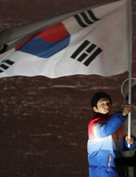 17일간 전세계를 울고, 웃게 만든 2010 밴쿠버 동계올림픽이 1일(한국시간) 캐나다 밴쿠버 BC 플레이스 스타디움에서 막을 내렸다.태극기를 들고 입장하는 모태범 ⓒ 연합뉴스 2010 밴쿠버 동계올림픽 스피드스케이팅 남자 500m 금메달리스트이자 1,000m에서 은메
