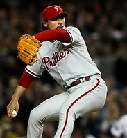 박찬호(36)의 소속팀 필라델피아 필리스가 미국프로야구 월드시리즈에서 먼저 승리를 챙겼다. 필라델피아는 29일(이하 한국시간) 미국 뉴욕 양키스타디움에서 열린 메이저리그 월드시리즈 1차전에서 체이스 어틀리의 연타석 솔로포와 선발 클리프 리의 눈부신 역투에 힘입어 6-1