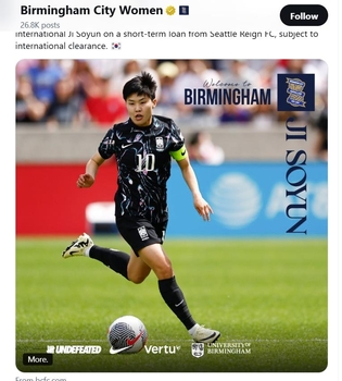 '한국 여자 축구 전설' 지소연, 英 2부 버밍엄 임대 이적 … "우승하기 위해 왔다"