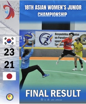 한국 여자 주니어 핸드볼 대표팀이 아시아선수권대회에서 일본을 제압하고 조별리그를 전승으로 마무리했다.김경진 SK슈가글라이더즈 감독이 지휘봉을 잡은 한국은 25일(현지시각) 우즈베키스탄 타슈켄트에서 열린 제18회 아시아 여자 주니어(19세 이하) 핸드볼 선수권대회 5일째