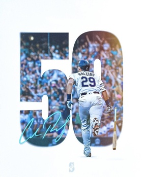 시애틀 매리너스의 '거포' 칼 롤리가 포수로는 사상 처음으로 미국프로야구 메이저리그(MLB) 단일시즌 50홈런 고지를 밟았다.롤리는 26일(한국시각) 미국 워싱턴주 시애틀 T-모바일 파크에서 열린 2025 MLB 샌디에이고 파드리스와 홈경기에 6번 타자 포수로 선발 출