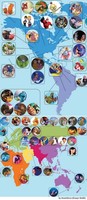 디즈니 주인공의 고향이 공개돼 화제다. 최근 미국의 디지털 아티스트가 디즈니 주인공들의 고향을 추적해서 세계 지도를 완성했다. 공개된 '디즈니 주인공의 고향' 세계지도를 보면 44편의 디즈니 장편 영화와 13편의 픽사 영화 중에서 23편의 고향이 유럽이었고 20편은 미