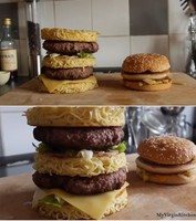라면과 햄버거의 만남, 푸짐한 5층 라면버거 제조법은?