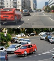 자동차 가면이 포착됐다. 최근 여러 온라인 커뮤니티 게시판에는 [자동차 가면]이라는 제목으로 영상과 사진이 올라와 눈길을 끌었다. 공개된 영상에는 고급 스포츠카로 꼽히는 빨간색 페라리 외관을 한 자동차가 도로를 달리고 있다. 그런데 자세히 보면 이 자동차는 다른 기종의