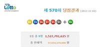 2013년 11월 2일 실시된 제570회 나눔로또 1등 당첨번호는 ‘1, 12, 26, 27, 29, 33’이며, 2등 보너스 번호는 42번이다. 이번 로또 570회차 추첨 결과 1등 당첨자는 9명으로 15억2779만1625원의 당첨금을 받게 됐다. 1등 번호 중개와