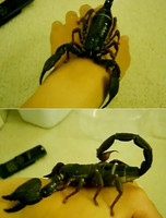 나만 예쁜 애완동물이 포착됐다. 최근 온라인 커뮤니티 게시판에는 [나만 예쁜 애완동물]이라는 제목으로 사진이 올라왔다. 공개된 사진에는 사람 손등 위에 검은색 전갈이 올라가 있는 모습이 담겨 있다. 사진 속 전갈은 꼬리를 둥글게 말고 금방이라도 공격할 것 같은 자세를