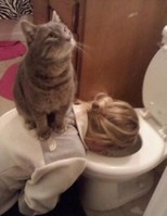 사람 걱정하는 고양이 포착됐다. 최근 한 온라인 커뮤니티 게시판에는 [사람 걱정하는 고양이]이라는 제목으로 한 장의 사진이 올라왔다. 공개된 사진에는 한 여성이 화장실 변기에 얼굴을 묻은 채 구토를 하고 있는 모습이 담겨 있다. 고양이는 여성의 등 위에 앉아 먼 곳을