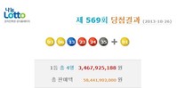 2013년 10월 26일 실시된 제569회 나눔로또 1등 당첨번호는 ‘3, 6, 13, 23, 24, 35’이며, 2등 보너스 번호는 1번이다. 이번 로또 569회차 추첨 결과 1등 당첨자는 4명으로 34억6792만5188원의 당첨금을 받게 됐다. 1등 번호 중개와 보