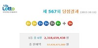 2013년 10월 12일 실시된 제567회 나눔로또 1등 당첨번호는 ‘1, 10, 15, 16, 32, 41’이며, 2등 보너스 번호는 28번이다. 이번 로또 567회차 추첨 결과 1등 당첨자는 6명으로 23억1865만9438원의 당첨금을 받게 됐다. 1등 번호 중개와