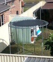 제일 무서운 트램펄린이 포착됐다. 최근 온라인 커뮤니티 게시판에는 [제일 무서운 트램펄린]이라는 제목으로 한 장의 사진이 올라왔다. 공개된 사진에는 한 가정집 뒷마당에 트램펄린이 설치돼 있는 모습이 담겨 있다. 그런데 사진을 자세히 보면 이 트램펄린은 지상에서 약 3m