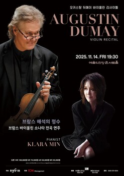 20세기 낭만주의의 마지막 계보를 잇는 바이올리니스트 오귀스땅 뒤메이가 피아니스트 클라라 민과 함께 오는 14일 오후 7시 30분 서울 서초구 예술의전당 콘서트홀에서 브람스 바이올린 소나타 전곡을 들려준다.오귀스땅 뒤메이는 세계 비평가들로부터 현대의 위대한 바이올리니스