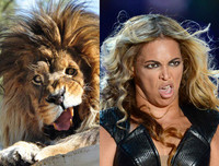 팝스타 비욘세를 닮은 사자가 등장했다. 최근 한 온라인 커뮤니티 게시판에는 [비욘세 닮은 사자]라는 제목으로 한 장의 사진이 게재됐다. 공개된 사진 속에는 잔뜩 화가 난 사자와 무대에서 열창하고 있는 비욘세의 모습이 나란히 편집돼 있다. 사자의 금빛털과 비욘세의 금발