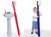 170cm 거대 칫솔이 공개됐다. 최근 각종 온라인 커뮤니티에는 [170cm 거대 칫솔]이라는 제목의 사진이 올라와 네티즌들의 관심을 모았다. 공개된 사진 속에는 세면대와 어린 아이의 키보다 큰 빨간색 칫솔과 파란색 칫솔이 나란이 세워져 있다. 170cm 거대 칫솔은