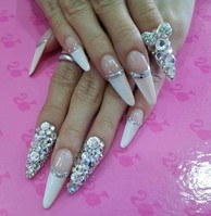 여름햇살이 눈부시듯 스와로브스키의 반짝임이 포인트를 살려준 네일 아트. 요즘 유행인 세로 그러데이션으로 베이지 컬러를 은은하게 넣어 화이트 프렌치에 화려함을 더했다. * 과정설명1. 익스텐션이나 자연손톱에 화이트 프렌치를 넣는다.2. 젤 머신에 30초간 큐어링한
