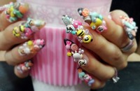 아크릴 파우더를 이용하여 그림 속 캐릭터들을 입체적으로 살린 엠보아트. 숍에선 엄지발톱이나 손에 1~2개 포인트를 줄 때 약간 큰 사이즈로 제작해 활용 가능하다. * 과정설명1. 자연손톱 혹은 연장해 원하는 길이로 시술이 가능하다. 2. 파스텔 톤의 파우더들과 화이트