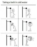 찬물로 샤워할 때 공감이 화제다. 최근 온라인 커뮤니티 게시판에는 [찬물로 샤워할 때 공감]이라는 제목의 웹툰이 게재돼 눈길을 끌었다. 공개된 웹툰 속 주인공은 차가운 물이 나오는 샤워기 앞에서 표정을 찡그리고 있다. 그러다 손이나 발을 살짝 대보다가 어쩔 수 없이 몸