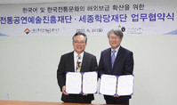 세종학당재단(이사장 송향근)과 전통공연예술진흥재단(이사장 이문태)이 손잡고 해외에서 전통공연예술 교육을 통한 한국 알리기에 나선다.세종학당재단과 전통공연예술진흥재단은 24일 서울 서초동 국립국악박물관에서 두 재단 이사장이 참석한 가운데 업무협약을 체결했다. 두 재단은