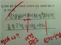 선생님이 예쁜 이유가 네티즌들에게 폭소를 안겼다. 최근 한 온라인 커뮤니티 게시판에는 [선생님이 예쁜 이유]란 제목으로 한 장의 사진이 게재됐다. 공개된 사진에는 한 초등학교 시험문제의 답안 내용이 담겨 있다. 문제는 지문 속 [고치다]와 같은 뜻으로 짧은 글을 짓는