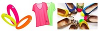 의류, 슈즈, 액세서리 등 네온 컬러는 원색의 컬러보다 강렬해서 더운 여름 가벼운 옷차림에 잘 어울린다. 특히 바캉스 룩의 포인트 아이템으로 제격이다. 경기침체가 계속 되면서 컬러풀하면서도 저렴한 아이템으로 개성을 표출하기 위한 소비자들이 많아짐에 따라 화려한 컬러 아