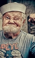 뽀빠이 실사판이 등장했다. 최근 한 온라인 커뮤니티 게시판에는 [뽀빠이 실사판]이라는 제목으로 사진 한 장이 올라와 눈길을 끌었다. 공개된 사진에는 인기 만화 캐릭터 뽀빠이를 똑 닮은 할아버지가 턱수염을 기른 채 주먹을 불끈 쥐고 있는 모습이 담겨 있다.뽀빠이가 새겨진