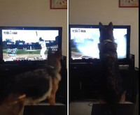 야구 보다가 화난 개, TV에 발길질 “경기 상황 답답해서?”