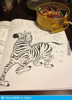 색칠할 필요가 없는 그림이 공개됐다. 최근 각종 온라인 커뮤니티 게시판에는 ‘색칠 필요 없는 그림’이라는 제목으로 한 장의 사진이 올라왔다. 공개된 사진은 유아들을 위한 색칠공부책의 한 페이지로 얼룩말 그림이 담겨 있다. 그런데 검정색은 이미 칠해져 있는 상태로 흰색은