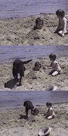 ‘전봇대로 오해받은 애’ 영상이 폭소를 안겼다. 최근 한 온라인 커뮤니티 게시판에는 ‘전봇대로 오해받은 애’라는 제목의 영상이 게재돼 눈길을 끌었다. 공개된 영상에는 해변에서 여아이 두 명이 모래장난을 하고 있는 모습이 담겨 있다. 그런데 어디선가 검은 개가 다가와 모