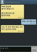 '치킨이 땡기는 택배기사'가 화제다. 최근 한 온라인 커뮤니티 게시판에 '치킨이 땡기는 택배기사'라는 제목으로사진 한 장이 게재됐다. 공개된 문자 내용에는 택배 기사가 수취인에게 물품을 배달했다는 확인 문자가 담겨 있다.이에 택배 수취인이 "네네~ 감사합니다"라고 대답
