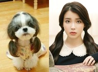 아이유 닮은 개, 똘망똘망 눈+양갈래 머리 “둘 다 귀여워”