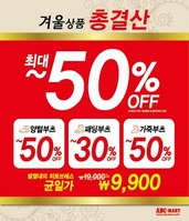 계사년 새해를 맞아 슈즈 쇼핑센터 ABC마트가 4일부터 ‘겨울상품 총결산 세일’을 진행한다.27일까지 진행되는 이번 세일 행사는 겨울 시즌 필수 아이템인 부츠와 방한의류 등을 최대 50% 할인 판매한다. 양털부츠, 가죽부츠와 생활방수가 가능한 패딩부츠까지 다양한 방한부