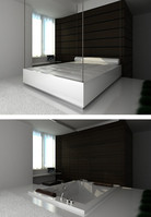 욕실로 변하는 침실 사진이 등장해 시선을 끌고 있다. 최근 한 온라인 커뮤니티 게시판에는 ‘욕실로 변하는 침실’이라는 제목으로 사진 두 장이 게재됐다. 해당 침대는 이탈리아의 한 가구 회사가 디자인한 것으로 평상시에는 잠을 잘 수 있는 공간으로 활용되지만, 침대를 위로