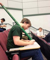 '힘이 남아도는 학생' 사진이 화제다.최근 온라인상에 ‘힘이 남아도는 학생’이라는 제목으로 한 장의 사진이 올라왔다. 사진 속에는 한 남학생이 대학 강의실로 보이는 곳에서 열심히 필기를 하는 모습이 담겨 있다. 그런데 그의 손에 들려 있는 필기도구가 심상치