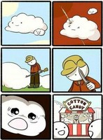 솜사탕의 진실이 밝혀졌다?최근 온라인상에 '솜사탕의 진실'이라는 웹툰이 등장해 화제를 모으고 있다.이 만화는 어릴 적 우리가 즐겨먹던 솜사탕 속에 '잔혹한 비화(?)'가 숨겨져 있음을 지적하고 있다.하늘 위에 엄마 구름과 아기 구름이 나란히 떠 있다. 그런데 한 사냥꾼