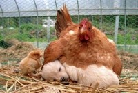 일명 '개를 품은 닭'이라는 사진이 네티즌들의 웃음을 유발시키고 있다.최근 온라인 커뮤니티를 통해 ‘개를 품은 닭’이라는 제목의 글과 함께 한 장의 사진이 게재돼 눈길을 끌고 있다.공개된 사진에서 커다란 어미닭은 병아리가 아닌 강아지 한 마리를 자신의 품 안에서 꼭 품