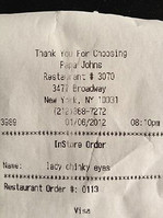 미국 유명 피자가게의 영수증에 논란이 일고 있다. 지난 8일(현지시각) 미국 일간지 뉴욕데일리뉴스는 “지난 7일 20대 한국계 여성 A씨가 뉴욕 맨해튼 인근의 파파존스 피자가게에서 주문자 이름에 ‘lady chinky eyes(찢어진 눈의 여성)’이란 내용이 적힌 영수