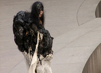 '광화문 괴물녀' ⓒ 자료사진 인터넷을 뜨겁게 달군 '광화문 괴물녀'의 정체가 한 극단의 여배우인 것으로 밝혀졌다.8일 각종 포털사이트 게시판과 블로그를 통해 '광화문 괴물녀'란 이름으로 공개 된 한 영상에서 쓰레기 봉투로 보이는 검은색 물체를 몸에 두르고 머리에서 상