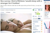 “월드컵 축구 티켓을 준다면 낯선 남자와도 하룻밤을 보낼 수 있다.” 영국의 콘돔회사 듀렉스가 최근 영국 성인 여성들을 대상으로 한 조사에서 응답자의 절반 이상이 ‘돈을 준다면 동침할 수 있다’는 대답이 나왔다.영국 일간 텔레그라프는 최근 듀렉스의 조사 결과 “영국인