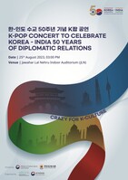 문화체육관광부(이하 문체부)는 한국과 인도 수교 50주년을 기념해 인도 뉴델리에서 'K-컬처 간담회', '케이팝 콘서트' 등 행사를 개최한다.대한민국은 1973년 인도와 수교 이후 문화협정 체결(1974년), 서남아 최초 한국문화원 개원(2012년), 인도의 한국어 제