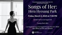 소프라노 박혜상이 뉴욕한국문화원과 한국음악재단의 공동 주최로 3월 3일(현지시간)뉴욕 카네기홀에서 데뷔 리사이틀을 갖는다.이번 공연은 3월 '여성 역사의 달'을 기념해 음악사에 크게 영향을 미친 근현대 여성 작곡가들의 작품을 조명한다. 박혜상의 목소리로 재해석한 사랑과