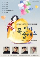 어린이날 제정 100주년을 기념하는 가족음악회 '꼭 안아줄래요'가 5월 1일 오후 6시 롯데콘서트홀에서 열린다.이날 '꼭 안아줄래요' '어느 봄날' '꿈 꾸지 않으면' 등의 동요를 오케스트라 편곡으로 재해석하고, 뮤지컬 '레미제라블' 넘버와 영화 '포카혼타스' '라이온