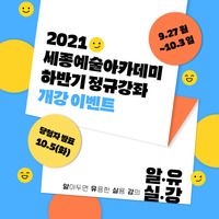 세종문화회관 세종예술아카데미가 10월 5일 하반기 정규강좌 개강을 앞두고 수강생을 대상으로 이벤트를 진행한다.세종예술아카데미는 전 강좌 모두 대면 강의로 수강생을 맞는다. 온라인 강의로는 전달하기 어려운 풍성한 음악 소리와 현장의 떨림, 화려한 색감 등을 강사와의 소통