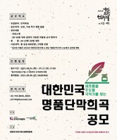 한국연극협회가 '대한민국 명품단막희곡' 공모전을 실시한다.이번 공모전은 2022년 제40회를 맞이하는 '대한민국연극제'를 시작으로 새로운 변화를 시도하고자 기획됐다. 매년 다양한 소재의 단막극을 발굴함과 동시에 지역연극 활성화 및 문화향유기회 확대를 모색할 예정이다.공
