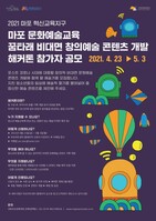 마포문화재단(대표이사 송제용)이 코로나19로 지친 청소년에게 예술적 활기 불어넣을 참신한 콘텐츠를 찾는다.마포문화재단은 '2021 마포 문화예술교육 꿈타래 엮기' 사업으로 비대면 창의예술 콘텐츠 개발 해커톤 참여 예술가를 4월 23일~5월 3일 공개 모집한다고 밝혔다.