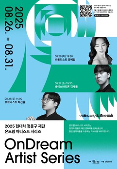 현대차 정몽구 재단(이하 재단)은 오는 8월~9월 다섯 차례의 공연을 통해 '2025 온드림 시리즈'를 개최한다.8월 26·27일·31일 서울 서초구 예술의전당 인춘아트홀에서 문화예술 인재들의 리사이틀 프로그램 '온드림 아티스트 시리즈'가 3회 열린다. 9월 10·17